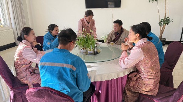 這份對“年”的認真和期盼,很快勾起滿室共鳴。從牧區(qū)來的措姆,說起她家鄉(xiāng)的新年,臉上都是笑:“過年前,我阿媽會花好多心思準備‘切瑪’(五谷斗),里面裝好糌粑、麥粒,插上青稞穗和酥油做的花,看著就歡喜,寓意豐收。除夕晚上吃‘古突’才熱鬧呢,面團里藏著鹽巴、辣椒、羊毛,誰吃到什么,就預示他新一年的脾氣或運氣,大家互相猜,笑話能笑一整晚!”她講得手舞足蹈,描述鮮活熱烈,草原的奔放歡騰順著話音帶到了同事面前。來自四川的漢族同事小劉也忍不住分享:“這時候,我家也該熏臘肉了,滿院子都是煙煙火火的香氣,還要寫春聯(lián)、守歲,桌上總有一大盤吃不完的菜,叫‘年年有余’!”